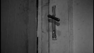 Человек в темном плаще входит в спальню, убивает ножом спящего там мужчину и покидает комнату.